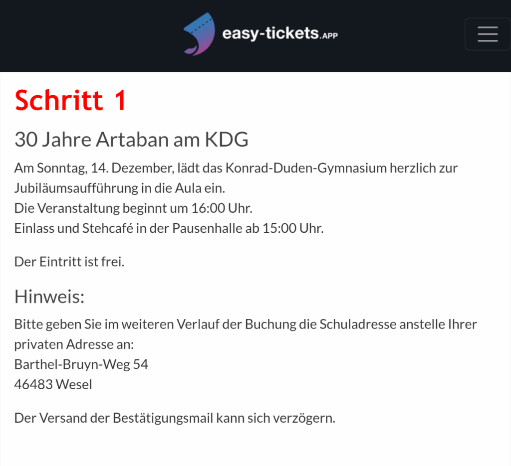 Zur Reservierung der begrenzten Tickets nutzen sie bitte die easy-tickets.app.