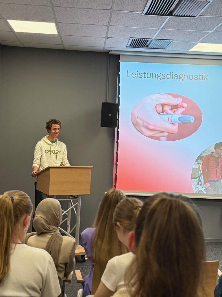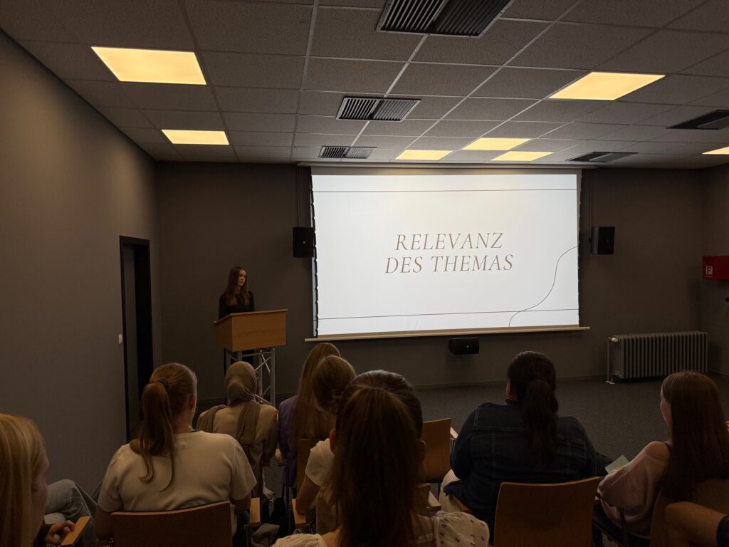 Am Ende des Schuljahres 24/25 konnten die Schüler und Schülerinnen der Mein D!ng AG aus dem Jg. 9 und 10 ihre engagierten Projektarbeiten im Kulturzentrum des KDG präsentieren und ihre erworbene Expertise unter Beweis stellen. Sie gaben dabei Einblicke in die Themen, mit denen sie sich das Jahr über intensiv auseinandergesetzt haben, sowie in die vielfältigen Schritte und Herausforderungen des gesamten Arbeitsprozesses.