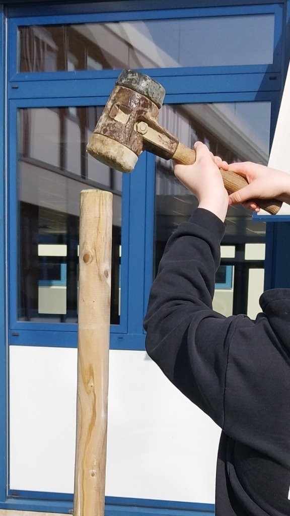 • Markieren der Standorte mit Holzpflöcken und Vorschlaghammer