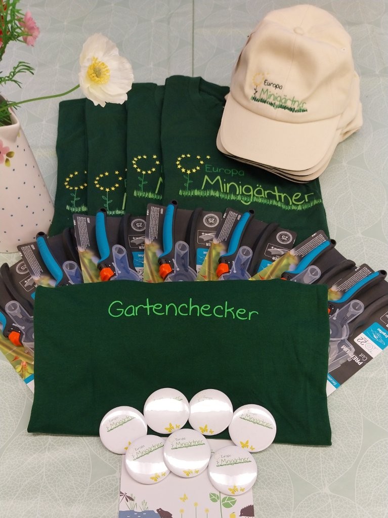 Mit dabei war bei diesem ersten Lerntreffen auch ihre Lehrerin Gisela Gockel und Angie Hasenclever vom Europa Minigärtner- Organisationsbüro. Diese hieß die die Jugendlichen im Projekt willkommen und stattete sie mit den obligatorischen Projekt-T-Shirts, Caps und Werkzeugen aus.