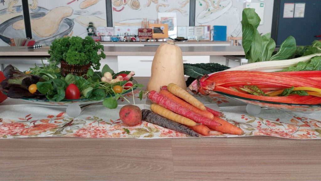 Eine Woche später standen dann im Hauswirtschaftsunterricht der Gruppe Kostproben der auf dem Gärtnerhof kennengelernten Gemüsesorten bereit, aus welchen sie herbstliche Gemüseflammkuchen zubereitete. Lecker!