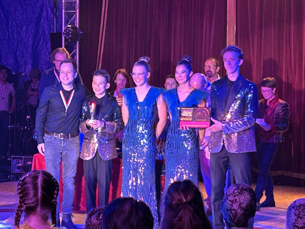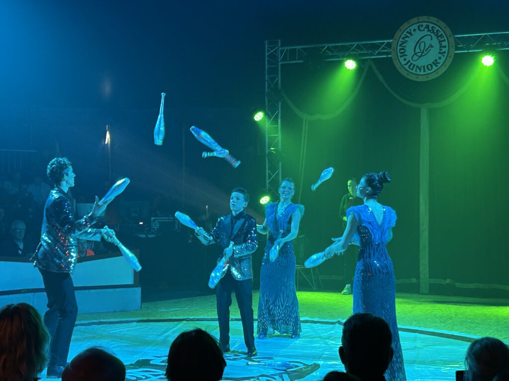Die Keulen Jonglage (mit Johanna Oberste-Padtberg, Vincent Bur sowie Maximilian und Sophie – siehe Fotos) vom Zirkus Butterfly hat sich dabei für die Finalshow qualifiziert. Im Anschluss an die Finalshow wurde sie auch noch mit einem Preis belohnt : Ein kostenloses Trainingswochenende an der Zirkusschule Circartive School in Gschwend.